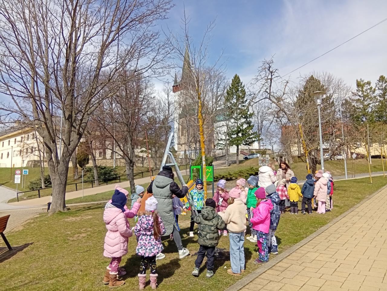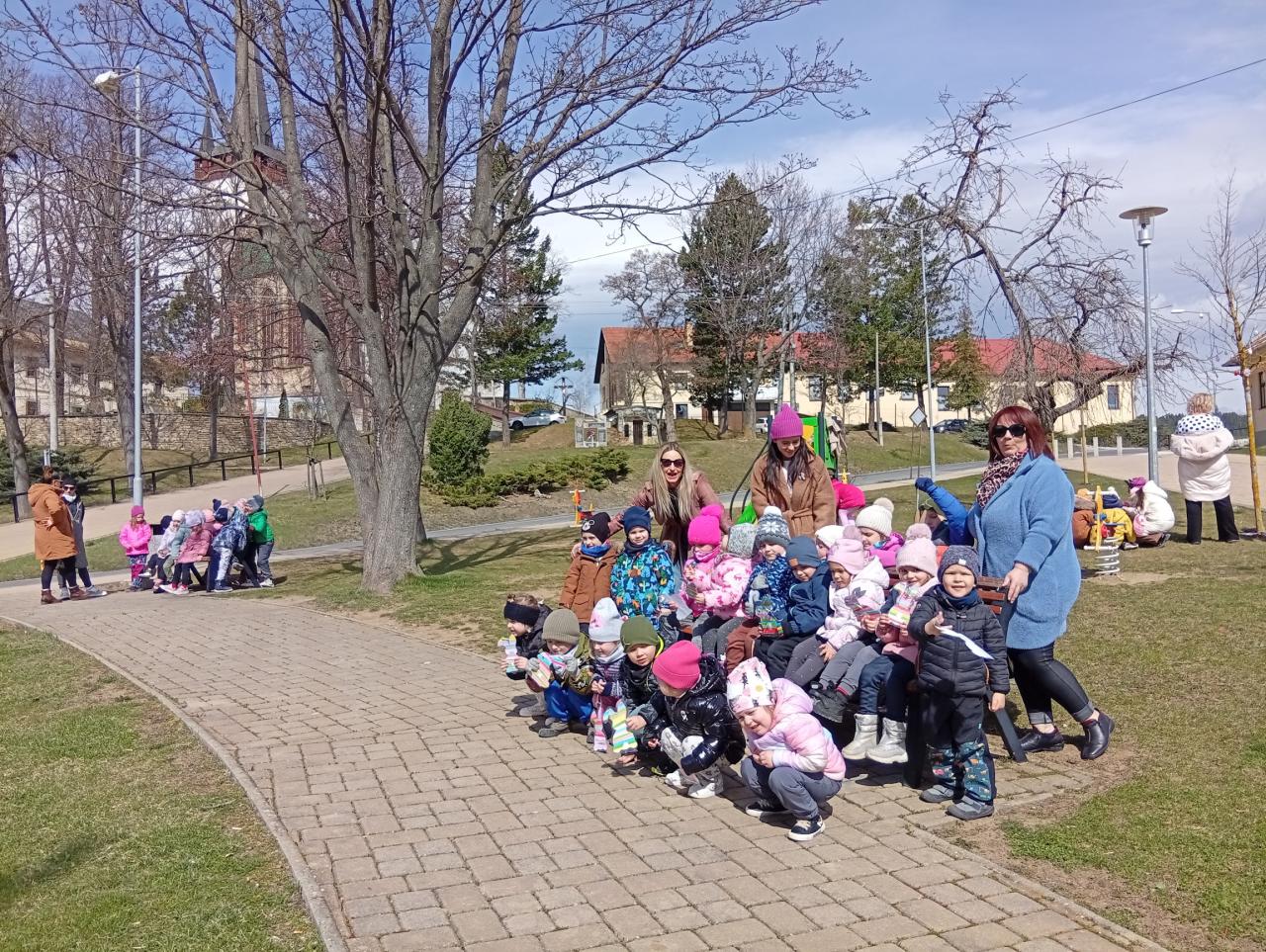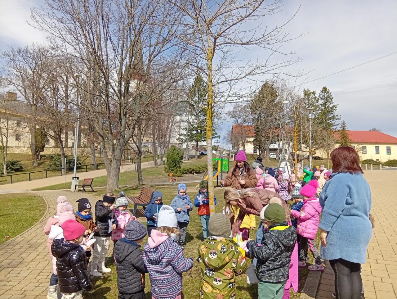 Ako každý rok, pani učiteľky s deťmi z materskej škôlky a žiaci so svojou pani učiteľkou zo základnej školy prišli skrášliť náš park a pripraviť ho na príchod Veľkej noci.